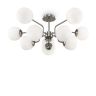 Металлическая арматура, цвет – никель, латунь. Плафоны – выдувное стекло белого цвета. Широкая семья. У торшера и настольной лампы можно изменять положение плафона. Регулируемая высота.