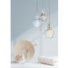 Арматура — металл, оттенок — никель. Рельефный плафон выполнен из стекла. Оттенки плафона — прозрачный и голубой. Витой провод. Регулируемая высота.