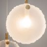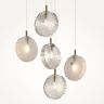 Материал арматуры - металл, цвет - латунь. Серия вдохновлена эстетикой северных лесов. Плафоны - литое цельное стекло в форме и фактуре среза дерева. Три варианта цвета плафонов: прозрачный; прозрачный + матовый; прозрачный + матовый + изумрудный. Эстетичные крепления и магнитная потолочная чаша без видимых болтов. Готовые композиции из 1, 5, 7 и 12 плафонов. Источник света - лампа с цоколем G4.