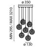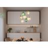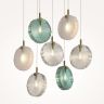 Материал арматуры - металл, цвет - латунь. Серия вдохновлена эстетикой северных лесов. Плафоны - литое цельное стекло в форме и фактуре среза дерева. Три варианта цвета плафонов: прозрачный; прозрачный + матовый; прозрачный + матовый + изумрудный. Эстетичные крепления и магнитная потолочная чаша без видимых болтов. Готовые композиции из 1, 5, 7 и 12 плафонов. Источник света - лампа с цоколем G4.