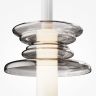 Уникальная многослойная конструкция в образе звуковой волны. Магнитная потололчная чаша из металла без видимых креплений. Плафон-трубка из белого полупрозрачного стекла. Декоративный волнообразный «звуковой» элемент из литого стекла в центре плафона. Цвета - синий, черный, золото, серый. Источник света - лампа с цоколем G9.