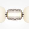 Металлическая арматура, цвет - золото, хром. Микс плафонов округлых и вытянутых форм из белого матового и прозрачного стекла с сетчатым и с линейным повторяющимся рельефным рисунком. Регулируемая высота подвесных моделей, провод - 3 метра. LED-источник света, цветовая температура 3000К.