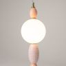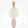 Металлическая арматура цвета латуни. Плафоны из белого стекла для мягкого, равномерного освещения, декоративные элементы из цветной керамики. Угол рассеивания 120°. Цветовая температура – 3000 К. Регулируемый провод длиной 3 м.