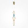 Металлическая арматура цвета латуни. Плафоны из белого стекла для мягкого, равномерного освещения, декоративные элементы из цветной керамики. Угол рассеивания 120°. Цветовая температура – 3000 К. Регулируемый провод длиной 3 м.