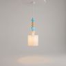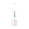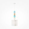 Арматура из металла, цвет - белый. Абажур выполнен из натуральной ткани, цветные декоративные элементы в пастельных тонах — из керамики. Белый абажур имеет классическую цилиндрическую форму, ткань дает мягкий рассеянный свет. Светильники комплектуются сменными лампами с цоколем Е27 (не входят в комплект). Провод подвесного светильника можно регулировать по длине. Декор напоминает стилистику крафтового искусства