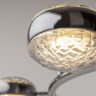 Два цветовых сочетания: сатинированная арматура из металла в цвете латунь в комбинации со стеклянными плафонами янтарного оттенка или трендовый черный хром с глянцевым финишем в сочетании с тонированными светло-серыми плафонами. Источник света: LED. Цветовая температура 3000К, угол рассеивания 120 градусов. Провод длиной 3 м можно регулировать по высоте — светильник подходит для помещений с высокими потолками.