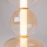 Светильники с тонированными выдувными стеклянными плафонами (дымчатыми или янтарными) и металлической арматурой (черной или цвета латуни). Окрашивание плафонов градиентное. Источник света: LED. Световой элемент установлен внутри акрилового рассеивателя. Цветовая температура источника света – 3000К, угол рассеивания — 120°. Торшеры снабжены Push-кнопкой на проводе.