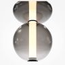 Светильники с тонированными выдувными стеклянными плафонами (дымчатыми или янтарными) и металлической арматурой (черной или цвета латуни). Окрашивание плафонов градиентное. Источник света: LED. Световой элемент установлен внутри акрилового рассеивателя. Цветовая температура источника света – 3000К, угол рассеивания — 120°. Торшеры снабжены Push-кнопкой на проводе.