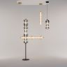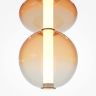 Светильники с тонированными выдувными стеклянными плафонами (дымчатыми или янтарными) и металлической арматурой (черной или цвета латуни). Окрашивание плафонов градиентное. Источник света: LED. Световой элемент установлен внутри акрилового рассеивателя. Цветовая температура источника света – 3000К, угол рассеивания — 120°. Торшеры снабжены Push-кнопкой на проводе.