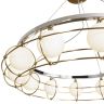 Металлическая арматура сочетает два цвета: хром и золото. Плафоны из белого выдувного стекла. Каждый световой элемент заключен в металлический каркас. Регулируемая высота. Цоколь G9 (высота лампы не более 48мм).