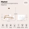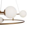 Арматура из металла в двух оттенках: черный и золото. Плафоны из матового выдувного стекла крепятся к металлическим дугам. Высота регулируется с помощью тросов.