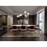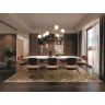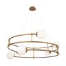 Арматура из металла в двух оттенках: черный и золото. Плафоны из матового выдувного стекла крепятся к металлическим дугам. Высота регулируется с помощью тросов.