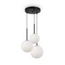 Материал арматуры – металл, цвет - золото, белый, черный. Округлые плафоны из матового белого стекла. Универсальные формы, минималистичный дизайн. Цоколь - E14. Лампы не входят в комплект. Регулируемая высота подвесных светильников.
