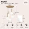 Материал арматуры – металл, цвет - золото, белый, черный. Округлые плафоны из матового белого стекла. Универсальные формы, минималистичный дизайн. Цоколь - E14. Лампы не входят в комплект. Регулируемая высота подвесных светильников.