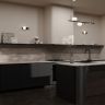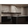 Арматура черного цвета дополнена латунными элементами, стеклянные плафоны — белые матовые. Спот для направленной подсветки снабжен LED-источником света, в плафон устанавливается встроенная лампа с цоколем G9. Цветовая температура — 3000 К, смешанный тип рассеивания. Провод длиной 3 метра можно регулировать по длине. На корпусе бра предусмотрены отдельные кнопки для управления источниками света.