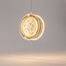 Арматура из металла цвета латунь с сатинированным финишным покрытием сочетается с прозрачными плафонами. Подвесные одинарные, горизонтальный и каскадные светильники оснащаются LED-модулем с двумя плоскими плафонами из акрила со сложным, актуальным паттерном на поверхности. Цветовая температура — 3000К, угол рассеивания — 125 градусов.