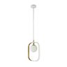 Металлическая арматура в комбинации двух оттенков: белый и серебро, белый и золото. Плафоны-сферы из выдувного стекла, цвет – белый. Регулируемая высота.