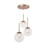 Материал арматуры – металл, цвет - золото, белый, черный. Округлые плафоны из матового белого стекла. Универсальные формы, минималистичный дизайн. Цоколь - E14. Лампы не входят в комплект. Регулируемая высота подвесных светильников.