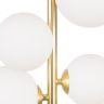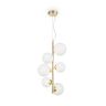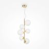 Металлическая арматура в четырех цветах: матовый черный, хром, золото, латунь. Плафоны — выдувное стекло. Цвета — дымчатый, янтарный, коньячный. Дизайн с имитацией молекулярной структуры. Высота подвесных светильников регулируется тросом. Лампа с цоколем G9.