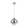 Арматура из металла в двух оттенках: никель и золото. Часть плафона выполнена из металла в тон арматуре, другая часть — из прозрачного стекла. Декоративные подвески внутри плафонов. Регулируемая высота.