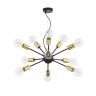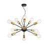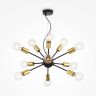Арматура — металл, цвет — черный. Декоративные колпачки оттенка латуни. Индустриальная стилистика. Высота регулируется тросом.