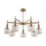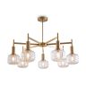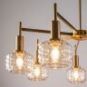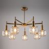 Металлическая арматура в цвете латунь. Плафоны из толстого рельефного стекла в оттенке амбра с «шипованной» огранкой. Подвесные модели регулируется по высоте. Источник света - лампа с цоколем Е14