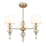 Арматура из металла, цвет — латунь. Плафоны — тканевые, молочного цвета. Металлическая конструкция декорирована выдувными стеклянными элементами с перламутровым напылением. Источником света служит лампа с цоколем Е14.