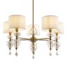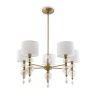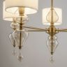 Арматура из металла, цвет — латунь. Плафоны — тканевые, молочного цвета. Металлическая конструкция декорирована выдувными стеклянными элементами с перламутровым напылением. Источником света служит лампа с цоколем Е14.