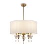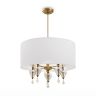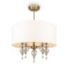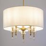 Арматура из металла, цвет — латунь. Плафоны — тканевые, молочного цвета. Металлическая конструкция декорирована выдувными стеклянными элементами с перламутровым напылением. Источником света служит лампа с цоколем Е14.