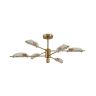 Металлический корпус, цвет— латунь. Плафон, моделированный под вытянутый лепесток с эффектом чеканки на стекле. Источник света — лампа с цоколем G9 и максимальной мощностью 30W дает яркое и равномерное освещение. Компактная высота – идеальное решение для низких потолков.