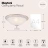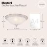 Металлическая арматура, оттенки – античная бронза, белый с золотом. Плафон – матовое стекло, пескоструйный рисунок. Обод и наконечник с прессованным орнаментом.