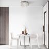Металлическая арматура в двух оттенках: хром, золото. Декор – прозрачные кристаллы. Потолочные модели имеют два яруса подвесок. Высота подвесной люстры регулируется тросом.
