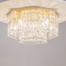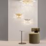 Металлическая арматура в двух оттенках: хром, золото. Декор – прозрачные кристаллы. Потолочные модели имеют два яруса подвесок. Высота подвесной люстры регулируется тросом.