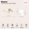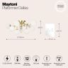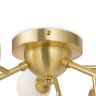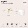 Металлическая арматура в четырех цветах: матовый черный, хром, золото, латунь. Плафоны — выдувное стекло. Цвета — дымчатый, янтарный, коньячный. Дизайн с имитацией молекулярной структуры. Высота подвесных светильников регулируется тросом. Лампа с цоколем G9.