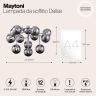 Металлическая арматура в четырех цветах: матовый черный, хром, золото, латунь. Плафоны — выдувное стекло. Цвета — дымчатый, янтарный, коньячный. Дизайн с имитацией молекулярной структуры. Высота подвесных светильников регулируется тросом. Лампа с цоколем G9.