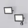 Прожекторы для освещения экстерьеров, рабочих пространств, производственных и промышленных помещений. Материал корпуса — алюминий. Цвет — чёрный. LED-источник света. Два варианта цветовой температуры - 4000К и 6500К. Пять размеров с соответствующими вариантами мощности — 10, 30, 50 Вт с датчиком движения. Модели 100 и 150 Вт без датчиков движения. Высокая степень защиты от пыли и влаги IP65.