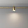Арматура и плафоны конической формы из алюминия в двух цветах – черном и латунь. Опаловый рассеиватель. Долговечные энергосберегающие источники LED-света бренда Osram. Цветовая температура 3000К, угол рассеивания 120°, коэффициент цветопередачи >90. Крепление магнитами на шинопровод с возможностью легкого перемещения светильников вдоль шины. Функция диммирования в группе возможна только в сочетании с блоками DALI/0~10V.