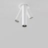 Материал корпуса – металл; цвет – белый, чёрный и латунный. Миниатюрные размеры. Плафон из двух частей. Горизонтальный и вертикальный поворотный механизм. LED-источник света. Цветовая температура – 3000К или 4000К. Высокий коэффицициент цветопередачи >90.